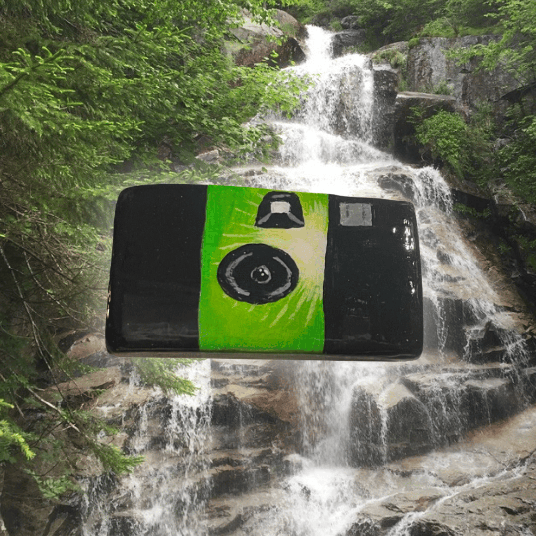 a teeny-tiny version of my favorite 35mm disposable camera, this glossy, vibrant and finely detailed magnet secures your best shots on the fridge.