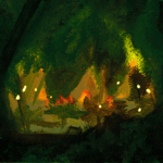 cue (women vocalizing) // 5x7 print features a dreamlike, impressionistic view of a secret feast
