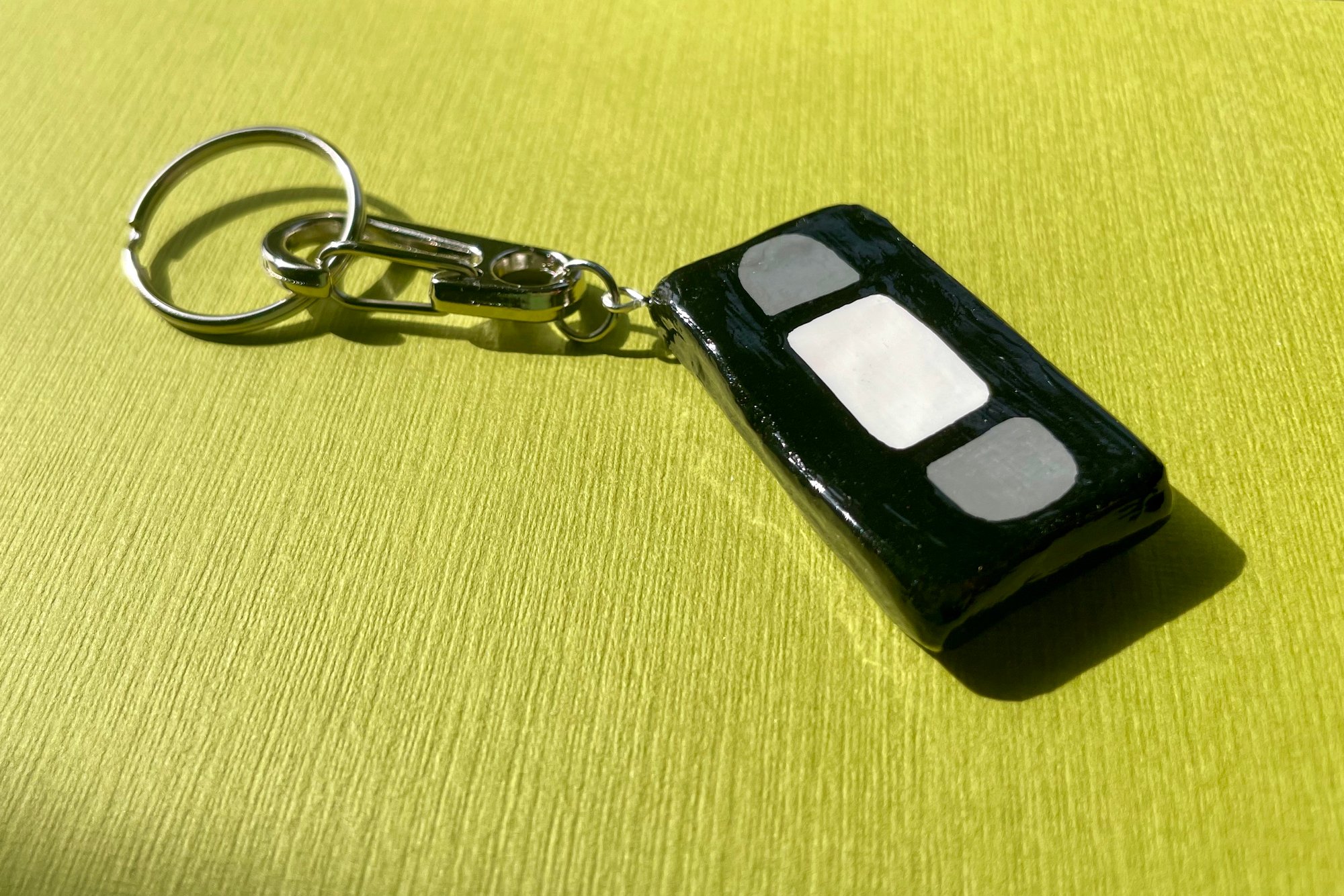 made from clay and coated with nontoxic glaze (not resin!), with handpainted details done in acrylic paint before the glazing process // comes attached to a spring hook carabiner (plus an extra keyring) that's easy to secure to your clothes or bags
