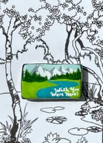 The Wilderness is calling... do you miss it? enjoy an iconic postcard in tiny form with this postcard fridge magnet, featuring the world's tiniest trees, jagged, snowy peaks and a river leading you deeper.